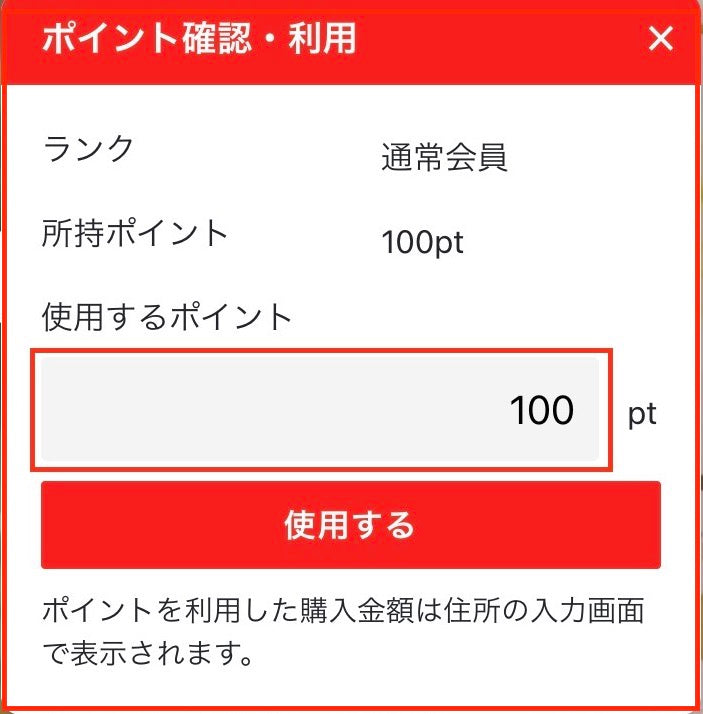 所持ポイント画面が表示されるので、「使用するポイント」入力欄にポイントを入力し、「使用する」ボタンをクリック。